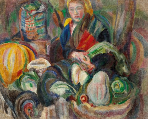 Bildnachweis: Sonia Delaunay-Terk, Marché au Minho, um 1915 – 1916, Öl und Enkaustik auf Leinwand, 113 cm x 139,5 cm, Privatsammlung Schweiz