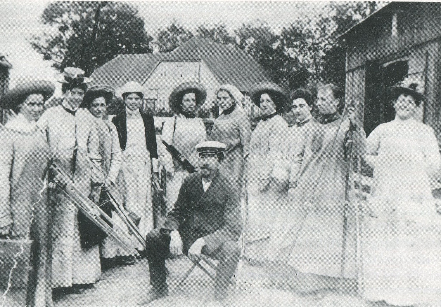 Bildnachweis: Exkursion der Hamburger Malschule Röver 1897 nach Neustadt in Holstein, (Vierte von rechts: Alma del Banco, vorne sitzend: Ernst Eitner, Zweite von links: Minna Schwerdtfeger), Fotograf*in unbekannt