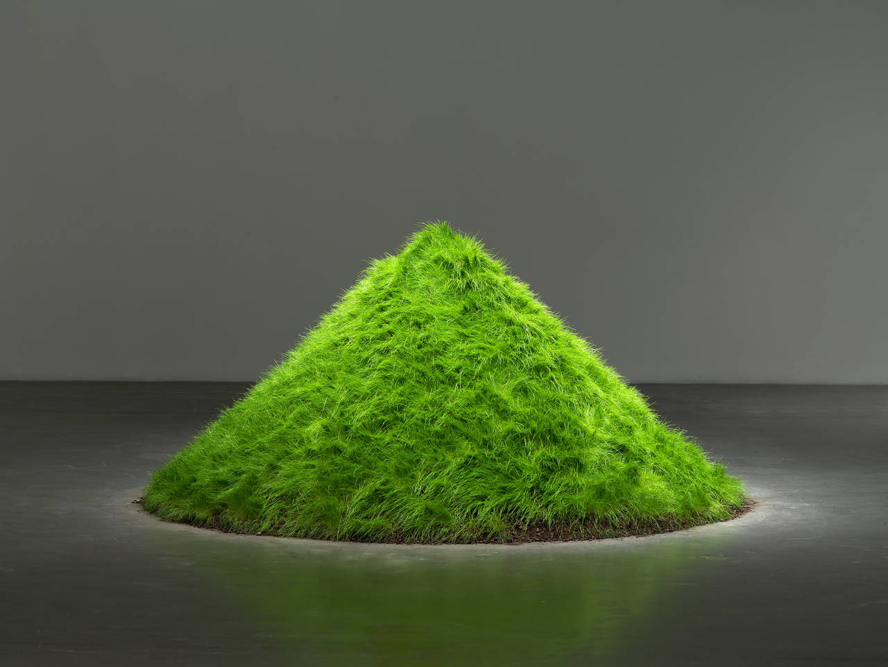 Bildnachweis: Hans Haacke, Grass Grows (Gras wächst), 1969, Erde, Grassamen, 150 × 300 cm (Durchmesser), Ausstellungsansicht: Hans Haacke: All Connected, 2019, New Museum, © Hans Haacke / VG Bild-Kunst, Bonn 2024, Foto: Dario Lasagni