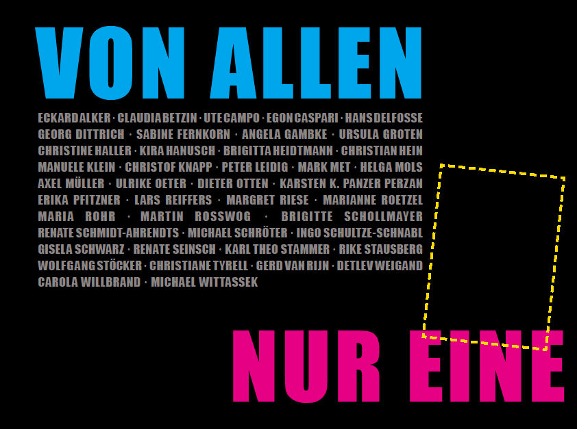 Eckard Alker · Claudia Betzin · Ute Campo · Egon Caspari · Hans Delfosse · Georg Dittrich ∙ Sabine Fernkorn · Angela Gambke · Ursula Groten · Christine Haller · Kira Hanusch ∙ Brigitta Heidtmann · Christian Hein · Manuele Klein · Christof Knapp · Peter Leidig ∙ Mark Met · Helga Mols · Axel Müller · Ulrike Oeter · Dieter Otten ∙ Karsten K. Panzer PerZan · Erika Pfitzner · Lars Reiffers · Margret Riese ∙ Marianne Roetzel · Maria Rohr · Martin Rosswog · Brigitte Schollmayer ∙ Renate Schmidt-Ahrendts · Michael Schröter · Ingo Schultze-Schnabl · Gisela Schwarz ∙ Renate Seinsch · Karl Theo Stammer · Rike Stausberg · Wolfgang Stöcker · Christiane Tyrell ∙ Gerd van Rijn · Detlev Weigand · Carola Willbrand · Michael Wittassek.